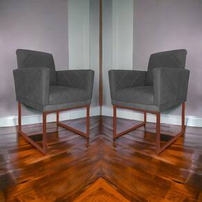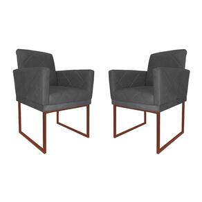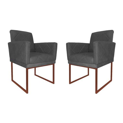 Kit 02 Poltronas Klara Para Sala Base Ferro Bronze Suede - Estopar - Cinza