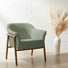 Kit 02 Poltronas Luna Base Madeira Bouclé Verde Claro - Nexta Casa