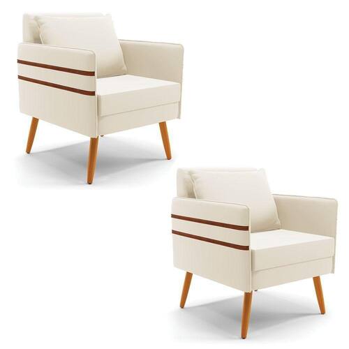 Kit 02 Poltronas Mari Veludo Pés Palito Castanho - D'rossi Cor Bege