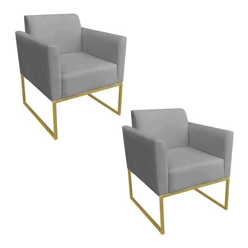 Kit 02 Poltronas Marisa Suede Base Metálica Dourado DRossi