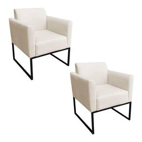 Kit 02 Poltronas Marisa Suede Bege Base Industrial Metálica Preto D'Rossi