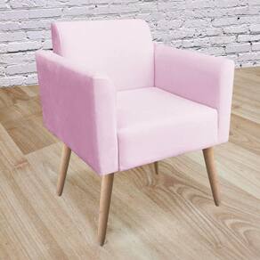 Kit 02 Poltronas Marisa Suede Rosa Bebê Pés Palito Natural D'Rossi
