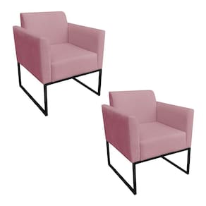 Kit 02 Poltronas Marisa Suede Rose Base Industrial Metálica Preto D'Rossi