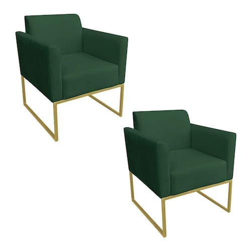 Kit 02 Poltronas Marisa Suede Verde Base Industrial Metálica Dourado D'Rossi