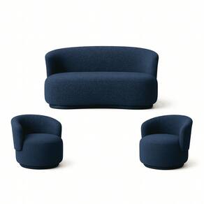 Kit 02 Poltronas + Namoradeira Decorativa Sala Estar Orgânica Beatriz Boucle Azul Marinho - Montanaris Decor