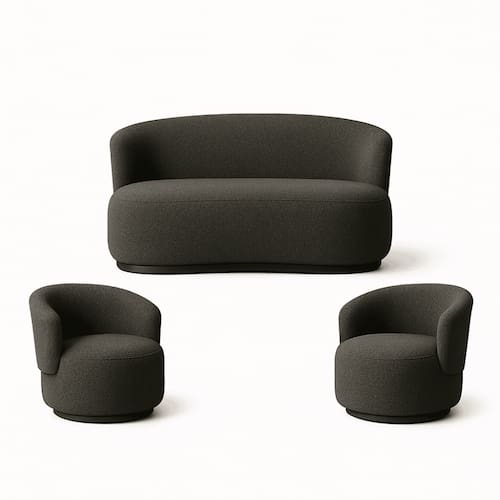 Kit 02 Poltronas + Namoradeira Decorativa Sala Estar Orgânica Beatriz Boucle Cinza Escuro - Montanaris Decor
