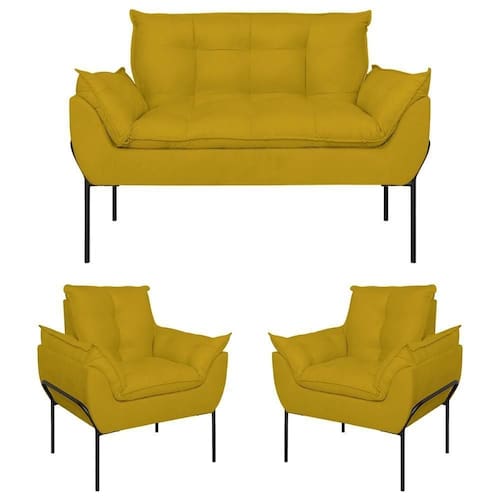 É Reclinável: Não | Desenho Do Tecido: Liso | Acessórios Incluídos: Não | É Sofá-Cama: Não | Estilo: Moderno | Cor Dos Pés: Preto | Linha: Premium | Material do estofamento: Suede | Unidades Por Kit: 3 | Densidade Da Espuma Do Assento: D-23 | Material De Enchimento Do Encosto: Espuma | Requer Montagem: Não | Altura: 86,5 cm | Marca: Balaqui Decor | Tipo de Garantia: Garantia do Fabricante | Coleção de Antiguidade: Não | Móvel Dobrável: Não | Dimensão (A x L x C): 86,5 x 132 x 61 | Estofado: Suede | de Assentos: 4 | Duração da Garantia: 3 meses | Largura: 132 cm | País de Origem: | Profundidade: 61 cm | Peso do Item (itemWeight): 22 kg | Tipo de produto: Sofá | Material: Madeira | Fabricante: Balaqui Estofados | Modelo: Kit Opala Base de Ferro | Quantidade de Peças: 3 | Quantidade de caixas de embalagem: 3 | Peso suportado: 150 kg | Material dos pés: Metal | Materiais da estrutura: Madeira | É modular: Não | É Em forma de U: Não | É de canto: Não | É com chaise: Não | Quantidade de Lugares: 4 | Revestimento: Suede | Montagem: Montagem completa Cor: Amarelo