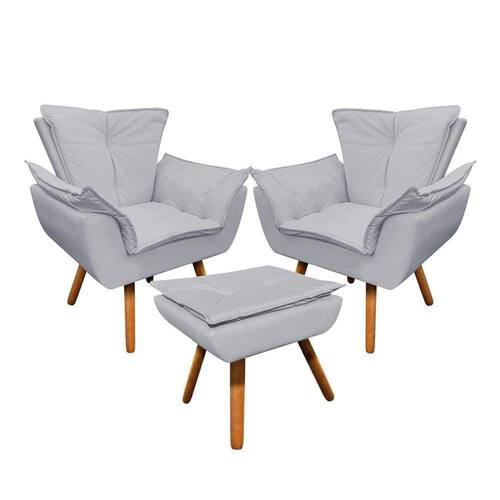 Se você estiver a procura de conforto para leitura e momentos de descanso a Poltrona Opala e o Puff é a melhor escolha. Com estilo inovador e moderno, a Poltrona Opala juntamente com o Puff são um empoderamento visual. Com elegância eles são feitos para preencher o ambiente de aconchego! O seu interior é estruturado em madeira reflorestada de eucalipto e sua base é de MDF reforçada, com pés de madeira castanhos, que dão o apoio necessário para que a Poltrona suporte até 120 kg e o Puff 80 kg. O encosto e o assento são fixos e utilizamos a espuma D-23. Poltrona e Puff Opala são os produtos que faltam em seu ambiente. Dimensões Poltrona: Altura total: 91 cm Largura total: 80 cm Profundidade total: 67 cm Altura do encosto: 46 cm Largura do assento: 40 cm Profundidade do assento: 46 cm Altura do chão ao assento: 46 cm Espessura do assento: 16 cm Tamanho dos pés: 30 cm Altura do chão ao braço: 63 cm Altura interna do braço: 23 cm Espessura do braço: 20 cm Peso: 14 kg 01 Puff: Altura: 45 cm Largura: 50 cm Profundidade: 40 cm Espessura do assento: 15 cm Tamanho dos pés: 30 cm Peso: 5 kg Especificações dos Produtos Estrutura: Madeira Eucalipto Espuma: Prorelax D-23 Tecido: Corino Tipo de pés: Pés palito Peso Suportado: Poltrona até 120 Kg e Puff até 80kg Garantia: 90 dias contra defeito de fabricação Montagem: O produto vai montado, apenas rosquear os pés Instruções de Limpeza: Utilizar um pano limpo e levemente úmido Você irá receber: 01 volume 02 Poltronas e 01 Puff Observações Relevantes - Todos os produtos vão embalados com total segurança; - As cores dos produtos podem sofrer alterações dependendo do seu monitor; - Para futuras compras, não garantimos a mesma tonalidade de cor, pois existe variação a cada lote do fabricante do tecido; - As imagens são meramente ilustrativas, não acompanham objetos de decoração e eletros; - Confira as dimensões do produto no momento da compra e certifique-se de que passará normalmente por escadas, elevadores, portas e corredores; - Importante: Por se tratar de estofado as medidas podem ter uma pequena variação em até 3 cm; - Não nos responsabilizamos no ato da entrega por montagens, desmontagens, instalações de produtos; - Não nos responsabilizamos no ato da entrega por subir escadas, elevadores, nem utilização de guinchos ou equipamentos similares para acesso a pisos superiores em apartamentos; - A entrega do produto é realizada em todo território nacional, até onde as rodovias alcançam, entregas fluviais ou aéreas devem ser cotadas a parte; - Observando as orientações acima, evita-se futuros desagrados ou imprevistos com a entrega do produto. Havendo despesas adicionais, serão de responsabilidade do cliente;