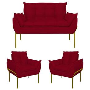 É Reclinável: Não | Desenho Do Tecido: Liso | Acessórios Incluídos: Não | É Sofá-Cama: Não | Estilo: Moderno | Cor Dos Pés: Dourado | Linha: Premium | Material do estofamento: Suede | Unidades Por Kit: 3 | Densidade Da Espuma Do Assento: D-23 | Material De Enchimento Do Encosto: Espuma | Requer Montagem: Não | Altura: 86,5 cm | Marca: Balaqui Decor | Tipo de Garantia: Garantia do Fabricante | Coleção de Antiguidade: Não | Móvel Dobrável: Não | Dimensão (A x L x C): 86,5 x 132 x 61 | Estofado: Suede | de Assentos: 4 | Duração da Garantia: 3 meses | Largura: 132 cm | País de Origem: | Profundidade: 61 cm | Tipo de produto: Sofá | Material: Madeira | Fabricante: Balaqui Estofados | Modelo: Kit Opala Base de Ferro | Quantidade de Peças: 3 | Quantidade de caixas de embalagem: 3 | Inclui manual de montagem: Não | Peso suportado: 150 kg | Material dos pés: Metal | Materiais da estrutura: Madeira | É modular: Não | É Em forma de U: Não | É de canto: Não | É com chaise: Não | Peso do Item (ItemWeight): 22 kg | Quantidade de Lugares: 4 | Montagem: Montagem completa Cor: Vermelho