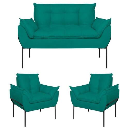 É Reclinável: Não | Desenho Do Tecido: Liso | Acessórios Incluídos: Não | É Sofá-Cama: Não | Estilo: Moderno | Cor Dos Pés: Preto | Linha: Premium | Material do estofamento: Suede | Unidades Por Kit: 3 | Densidade Da Espuma Do Assento: D-23 | Material De Enchimento Do Encosto: Espuma | Requer Montagem: Não | Altura: 86,5 cm | Marca: Balaqui Decor | Tipo de Garantia: Garantia do Fabricante | Coleção de Antiguidade: Não | Móvel Dobrável: Não | Dimensão (A x L x C): 86,5 x 132 x 61 | Estofado: Suede | de Assentos: 2 | Duração da Garantia: 3 meses | Largura: 132 cm | País de Origem: | Profundidade: 61 cm | Tipo de produto: Sofá | Material: Madeira | Fabricante: Balaqui Estofados | Modelo: Kit Opala Base de Ferro | Quantidade de Peças: 3 | Quantidade de caixas de embalagem: 3 | Inclui manual de montagem: Não | Peso suportado: 150 kg | Material dos pés: Metal | Materiais da estrutura: Madeira | É modular: Não | É Em forma de U: Não | É de canto: Não | É com chaise: Não | Peso do Item (ItemWeight): 22 kg | Quantidade de Lugares: 4 | Montagem: Montagem completa Cor: Azul Turquesa