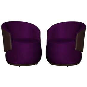 Kit 02 Poltronas Orgânico Design Confortável Beatriz Tecido Veludo Com Composê em Corino Marrom - Roxo