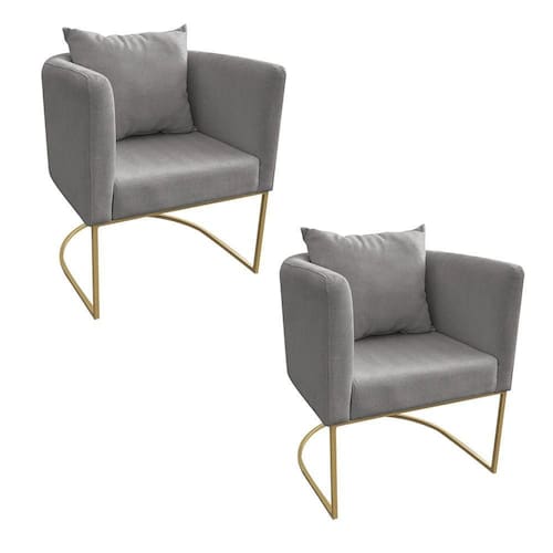 Kit 02 Poltronas Paola Linho Base Metálica Dourado - D'Rossi