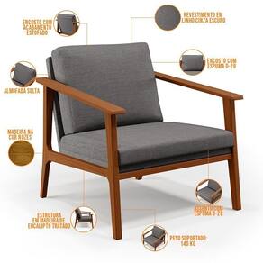 A praticidade e facilidade de compor qualquer ambiente a tornam ainda mais atraente, também merece destaque a estrutura em madeira, na cor nozes, o encosto estofado com a almofada solta que deixam tudo melhor e equilibrado em seu espaço.