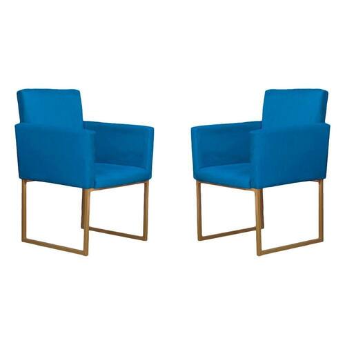 Kit 02 Poltronas Decorativas Klara Pés Base Ferro Dourada