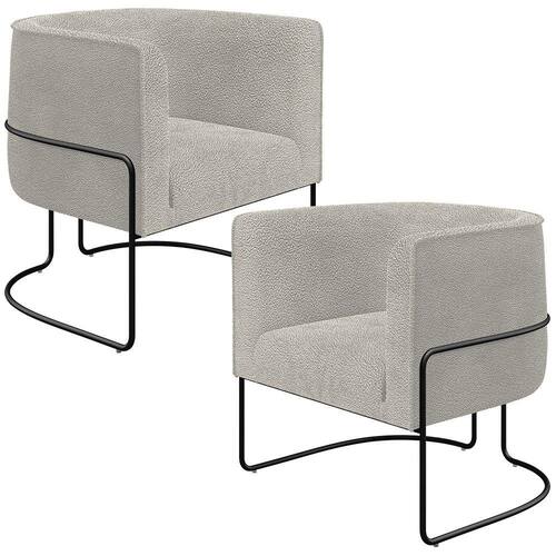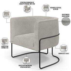 O Kit 02 Poltronas Decorativa Fixa Base Aço Preto Betina D02 Bouclê Creme - Lyam Decor exala formosura e elegância! Excelente opção para dispor em sua sala de estar ou espera, recepção, hall de entrada, dormitório, qualquer área de circulação ou antessala entre um cômodo e outro, as possibilidades de combinação são infinitas. Seu protagonismo é notório, sem sombra de dúvidas é perfeita para qualquer ambientação que desejar colocá-la.