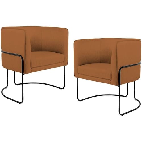 O Kit 02 Poltronas Decorativas Fixa Base de Aço Preto Betina D02 Veludo Telha C-262 - Lyam Decor exala formosura e elegância! Excelente opção para dispor em sua sala de estar ou espera, recepção, hall de entrada, dormitório, qualquer área de circulação ou antessala entre um cômodo e outro, as possibilidades de combinação são infinitas. Seu protagonismo é notório, sem sombra de dúvidas é perfeita para qualquer ambientação que desejar colocá-la.