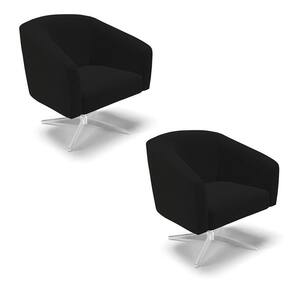 Kit 02 Poltronas Giratória Stella Linho Preto A79 Base Cromada - D'Rossi