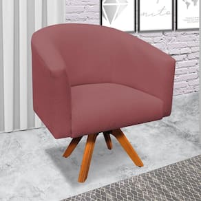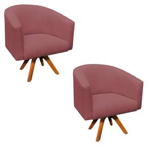 Kit 02 Poltronas Giratória Stella Linho Whisky Rosê A106 Base Madeira MM30 - D'Rossi