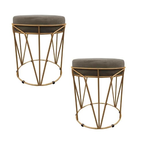 Kit 02 Puff Babu Suede Marrom Rato com Base Dourado DRossi