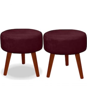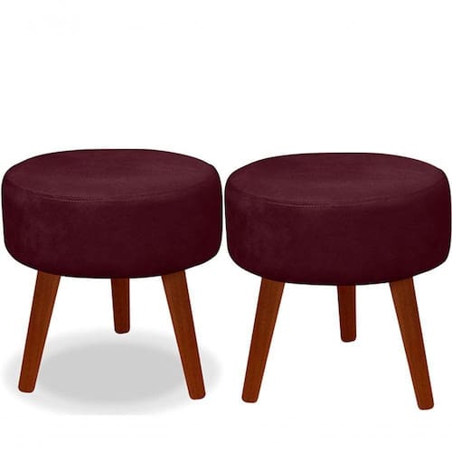 Kit 02 Puff Redondo Decorativo Panqueta De Apoiar Os Pés Suede Bordô
