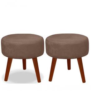 Kit 02 Puff Redondo Decorativo Panqueta De Apoiar Os Pés Suede Cappuccino