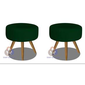 Kit 02 Puff Redondo Pés Palito Veludo Verde - Puff Redondo Puff Decorativo Redondo - Conforto e Estilo para o Seu Ambiente