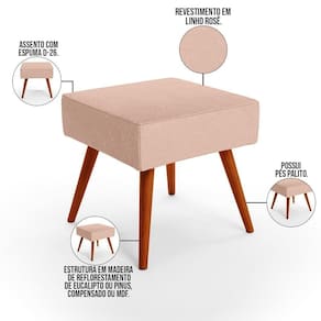 O Kit 02 Puffs Banqueta Decorativa Com Pés Palito Lívia W01 Linho Rosê - Lyam Decor é ideal para você que busca por elegância e praticidade em sua decoração! Seus pés delicados transmitem suavidade, harmonizando com o assento estofado, que por sua vez é revestido em Linho, tecido de excelente qualidade.