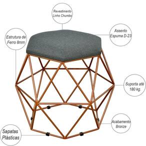 Descrição do produto: É fato que a decoração com itens aramados está super em alta, e é a responsável por mudar a decoração da casa! Esbanjando estilo, o Puff Six foge do tradicional e se destaca por sua modernidade e design de extremo bom gosto. Muito forte para o estilo de decoração glam ou também para áreas externas cobertas, este Puff Decorativo cai muito bem em ambientes como sala de estar, hall de entrada, recepções, ou onde mais sua imaginação permitir. Sua estrutura não desgasta no contato com o chão pois possui proteção com sapatas plásticas, além de um assento mega confortável. O seu mais novo queridinho do ambiente e cheio de charme Puff Six. :)