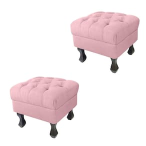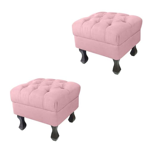 Kit 02 Puffs Decorativo Em Captonê Retrô Luis Xv Suede Rosa - LM DECOR