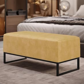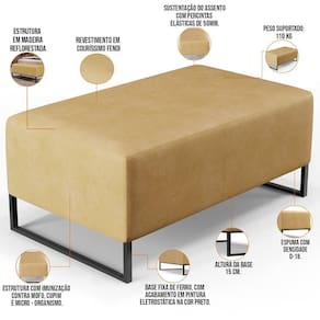 Pensando na praticidade do seu dia-dia, o Kit 02 Puffs Decorativos Sala de Estar Cléo W01 Base Ferro 90cm - Lyam Decor se faz perfeito para a sua ambientação!! É extremamente confortável, ideal para quem procura por Modernidade e beleza embutidos num único produto. Estruturado com espuma macia e de alta densidade e revestimento de excelente qualidade, além de seus belos pés de metal que arrematam muito bem toda a composição deixando-o ainda mais Moderno. Possuindo diferentes funções, pode ser posto em salas de estar, garantindo assentos extras, no quarto, como um apoio ou até mesmo recamier aos pés da cama, em closets, integrando ambientes, dentre outras maneiras. Com certeza vai harmonizar e embelezar ainda mais a decoração do seu lar.