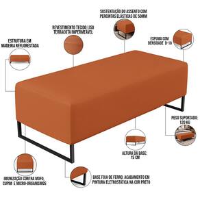 Pensando na praticidade do dia-dia, o Kit 02 Puffs Decorativos Sala de Estar Bali W01 Base Ferro 120x50cm Tecido Terracota - Lyam Decor se faz perfeito para a sua ambientação! É extremamente confortável, ideal para quem procura por funcionalidade e beleza embutidos num único produto. Estruturado com espuma macia e de alta densidade e revestimento de excelente qualidade, além de seus belos pés de metal que arrematam muito bem toda a composição deixando-o ainda mais elegante.
