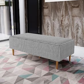Pensando na praticidade do dia-dia, o Puff Decorativo Sala de Estar Bali W01 Base Ferro 120x50 cm Suede Pied Poule - Lyam Decor se faz perfeito para a sua ambientação! É extremamente confortável, ideal para quem procura por funcionalidade e beleza embutidos num único produto. Estruturado com espuma macia e de alta densidade e revestimento de excelente qualidade, além de seus belos pés de metal que arrematam muito bem toda a composição deixando-o ainda mais elegante.