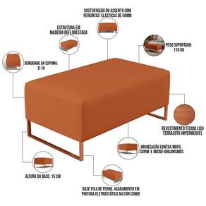 Pensando na praticidade do seu dia-dia, o Kit 02 Puffs Decorativo Sala De Estar Cléo 90cm Base De Ferro Cobre W01 Tecido Terracota - Lyam Decor se faz perfeito para a sua ambientação! É extremamente confortável, ideal para quem procura por modernidade e beleza embutidos num único produto. Estruturado com espuma macia e de alta densidade e revestimento de excelente qualidade, além de seus belos pés de metal que arrematam muito bem toda a composição deixando-o ainda mais moderno.