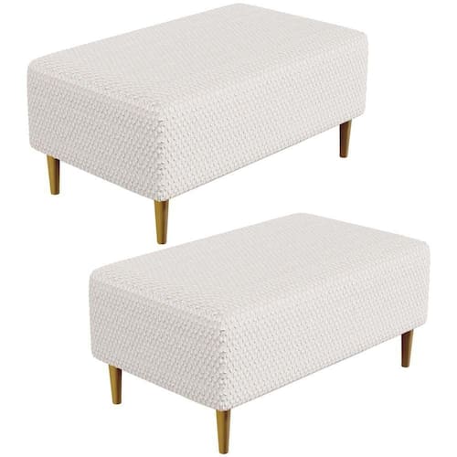 Kit 02 Puffs Decorativo Sala De Estar Cléo Pés Palito 90 Cm W01 Bouclê Cru - Lyam