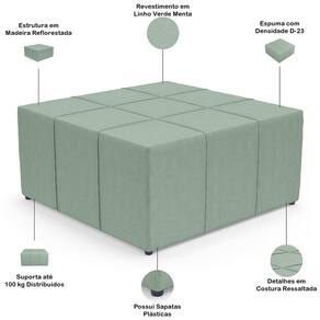 Extremamente confortável, ideal para quem busca por funcionalidade e beleza embutidos num único produto, O Kit 02 Puffs Decorativo Para Sala de Estar Quadrado Milano 90x90cm W01 Linho Verde menta - Lyam Decor é perfeito para seu ambiente e irá superar todas as suas expectativas! É estruturado com espuma macia de alta densidade e revestimento de excelente qualidade, além dos detalhes da costura ressaltada em padrão quadriculado que arrematam muito bem toda a composição deixando-o ainda mais elegante.