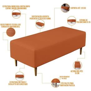 Pensando na praticidade do dia-dia, o Kit 02 Puffs Decorativos Sala de Estar Bali W01 Pés Palito 120x50cm Tecido Terracota - Lyam Decor se faz perfeito para a sua ambientação!! É extremamente confortável, ideal para quem procura por funcionalidade e beleza embutidos num único produto. Estruturado com espuma macia e de alta densidade e revestimento de excelente qualidade, além de seus belos pés palito que arrematam muito bem toda a composição deixando-o ainda mais elegante.