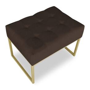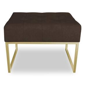 Kit 02 Puffs Lisa Suede Base Metálica Industrial Dourado - Pallazio Cor Marrom