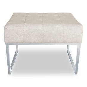 Kit 02 Puffs Lisa Suede Base Metálica Industrial Prata - Pallazio Cor Bege
