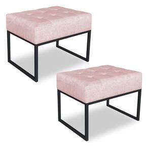 Kit 02 Puffs Lisa Suede Base Metálica Industrial Preto - Pallazio Cor Rosa Bebê
