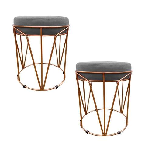Kit 02 Puffs Multiuso Com Mesa Babu 2 Em 1 Suede Grafite Base Cobre - D'rossi