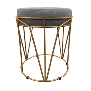 Kit 02 Puffs Multi Com Mesa Babu 2 Em 1 Suede Grafite Base Dourado - D'rossi