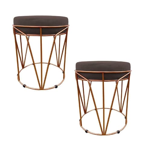 Kit 02 Puffs Multiuso Com Mesa Babu 2 Em 1 Suede Marrom Base Cobre - D'rossi
