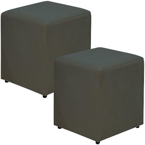 Kit 02 Puffs Quadrado L02 Sala De Estar Suede Cinza