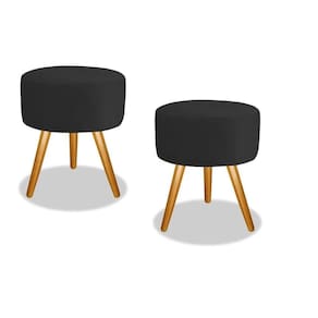 Kit 02 Puffs Redondo Luxo Suede Pés Palito Decorativo - Bela Móveis Cor: Preto Kit 02 Puffs Redondo Opala - Bela Móveis