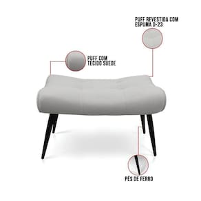 Saindo do forno, nosso lançamento Kit 02 Puffs Sher! Em primeira mão, a maior tendência do momento, ideal para residências, áreas corporativas, entre outros. Afinal é uma excelente aposta, para você que busca por um visual bastante atual. Sofisticação é o que define essa linda poltrona, com acabamento impecável e um design inovador, perfeita para seu momento de descanso. Estrutura em madeira de eucalipto proveniente de reflorestamento, espuma de alta qualidade D-23, tecido Suede no tom Cinza, e os pés palito de ferro super duráveis e resistentes. Uma peça dessa em seu cômodo pode ser muito interessante para tornar o ambiente ainda mais surpreendente e refinado. Que tal adquiri-los antes de todo mundo?
