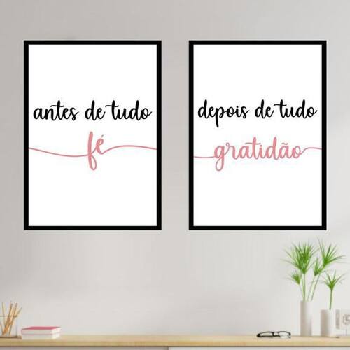 Com o Kit Quadro Decorativo da Quadros On-Line você transforma a decoração do seu ambiente, com beleza e bom gosto. Preencha aquela parede vazia com um quadro de alta qualidade, papel fotográfico brilhante de altíssima resolução e moldura em madeira maciça. Para maior proteção, a peça ainda conta com uma película de acetato. Características: - Papel fotográfico brilhante de altíssima resolução - Película de acetato para proteção da imagem - Moldura em madeira maciça - Pendurador móvel que pode ser retirado facilmente - Pode ser fixado com fita dupla face Especificações técnicas Marca: Quadros On-Line Quantidade de quadros:2 Modelo: Fé E Gratidão Rosa Material: Papel fotográfico brilhante Acabamento: Película de acetato Moldura: Madeira Cor moldura: Preto Tamanho cada : 45 x 34 cm - A3 Fixação: Prego ou fita dupla face de alta qualidade Acompanha pendurador: Sim : 3 meses Dica de limpeza A limpeza é feita como um móvel comum da sua casa. Apenas um pano seco ou espanador são suficientes para tal. Marca: Não Informado