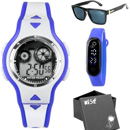 Kit 02 Relógios Digitais Infantis + Óculos Sol Proteção UV + Caixa - Orizom Kids Conjunto Estiloso Orizom Kids para Meninos: Relógio, Óculos e Caixa Exclusiva