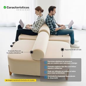 Sofá Ilha Orgânico Living Evo 125cm 02 Lugares: design contemporâneo e conforto em uma só peça. Seu formato orgânico e funcional oferece versatilidade para compor ambientes modernos e elegantes, ideais para convivência e decoração sofisticada. Com estrutura reforçada em madeira, o Sofá Evo possui assento com percintas elásticas que garantem firmeza e durabilidade. O estofamento em espuma de alta densidade proporciona conforto prolongado, enquanto o acabamento com costura rebatida destaca o cuidado nos detalhes. Os pés em madeira completam o visual com leveza e elegância. Além disso, seu design tipo ?ilha? permite uso em ambos os lados, tornando o ambiente mais dinâmico e funcional.