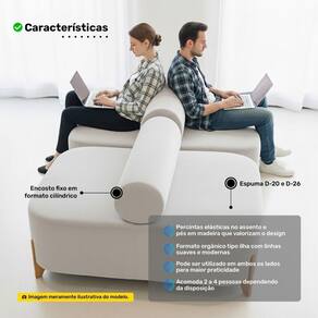 Sofá Ilha Orgânico Living Evo 125cm 02 Lugares: design contemporâneo e conforto em uma só peça. Seu formato orgânico e funcional oferece versatilidade para compor ambientes modernos e elegantes, ideais para convivência e decoração sofisticada. Com estrutura reforçada em madeira, o Sofá Evo possui assento com percintas elásticas que garantem firmeza e durabilidade. O estofamento em espuma de alta densidade proporciona conforto prolongado, enquanto o acabamento com costura rebatida destaca o cuidado nos detalhes. Os pés em madeira completam o visual com leveza e elegância. Além disso, seu design tipo ?ilha? permite uso em ambos os lados, tornando o ambiente mais dinâmico e funcional.