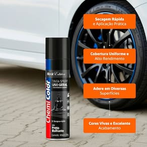 A Tinta Spray Uso Geral Chemicolor 400ml é a solução prática e versátil para quem busca renovar, decorar ou proteger superfícies com rapidez e excelente acabamento. Produzida com componentes de alta qualidade, oferece cobertura uniforme, secagem eficiente e alto rendimento, ideal para projetos em ambientes internos ou externos. Indicada para uso geral, apresenta ótimo desempenho quando aplicada após o preparo adequado da superfície. Sua fórmula adere com facilidade em materiais como metais, cerâmica, gesso, madeira e vime, garantindo resultados consistentes e duradouros. Disponível em diversas cores, permite criar efeitos decorativos modernos, vibrantes e bem definidos. Com frasco de 400ml, proporciona aplicação prática em jato contínuo, permitindo maior controle durante a pintura e acabamento limpo em poucas camadas. Uma escolha versátil para artesanato, manutenção, hobbies e pequenos reparos.